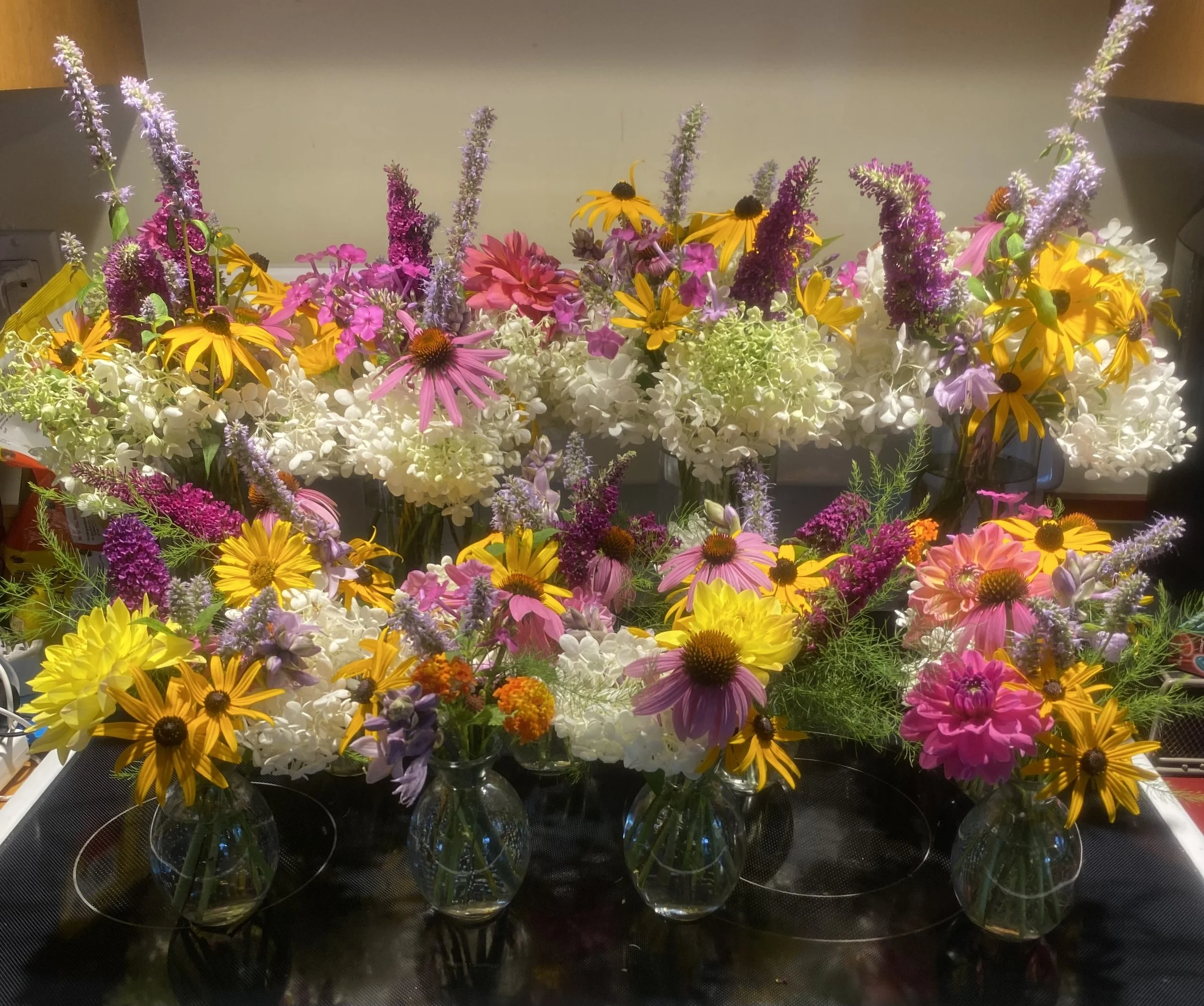 Liz Hanchuruck’s signature locally-grown arrangements showcase garden beauty- perfect for any indoor space.